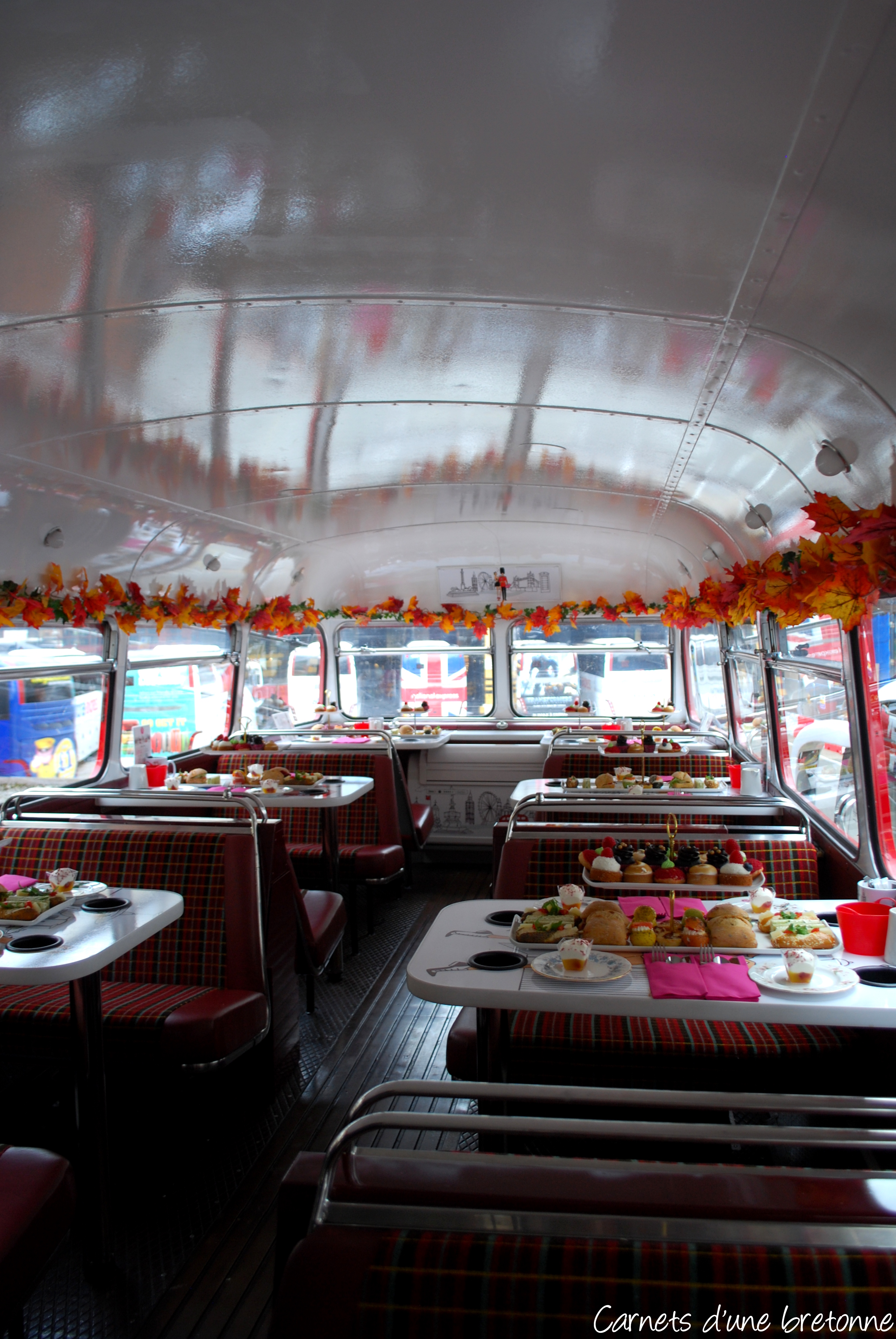Nous avions rendez vous à la gare routière Victoria Station à 12h pour un tour de Londres à bord d’un bus impérial des années 60 transformé en salon de thé.