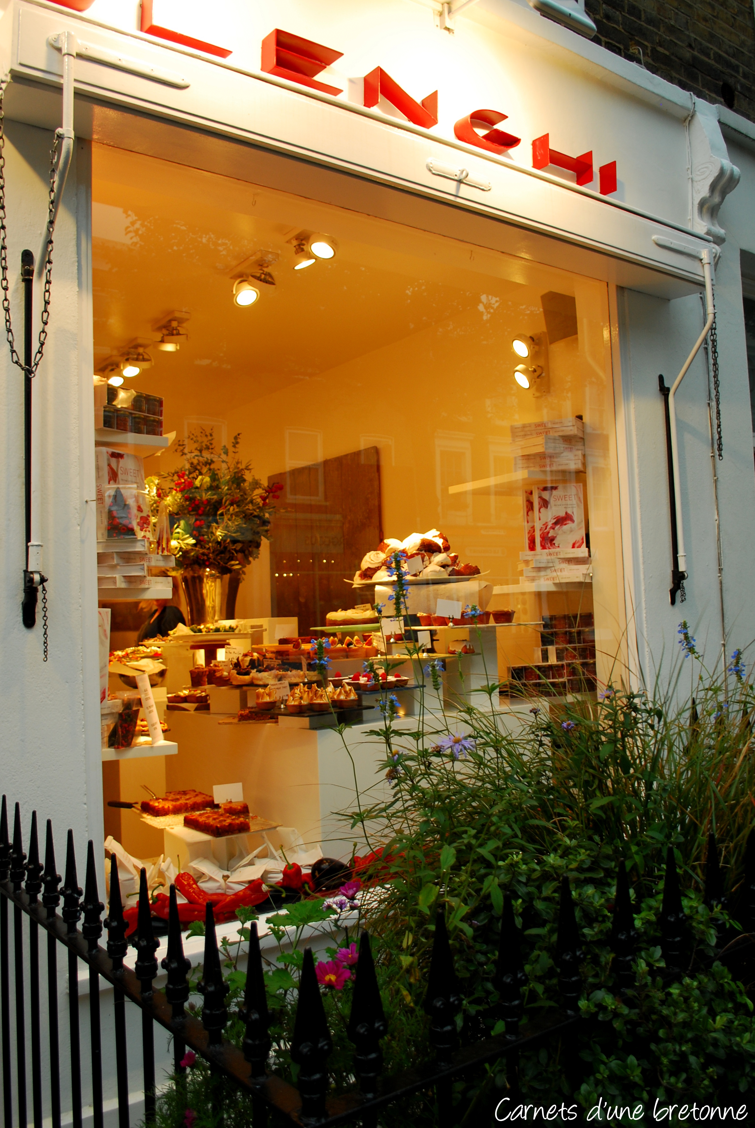 En passant devant cette vitrine très alléchante en fin de journée, nous avons craqué ! Ottolenghi est un chef israélien bien connu des Anglais puisqu’il est installé à Londres depuis 20 ans. Un traiteur faisant découvrir des saveurs étonnantes en salé comme en sucré.