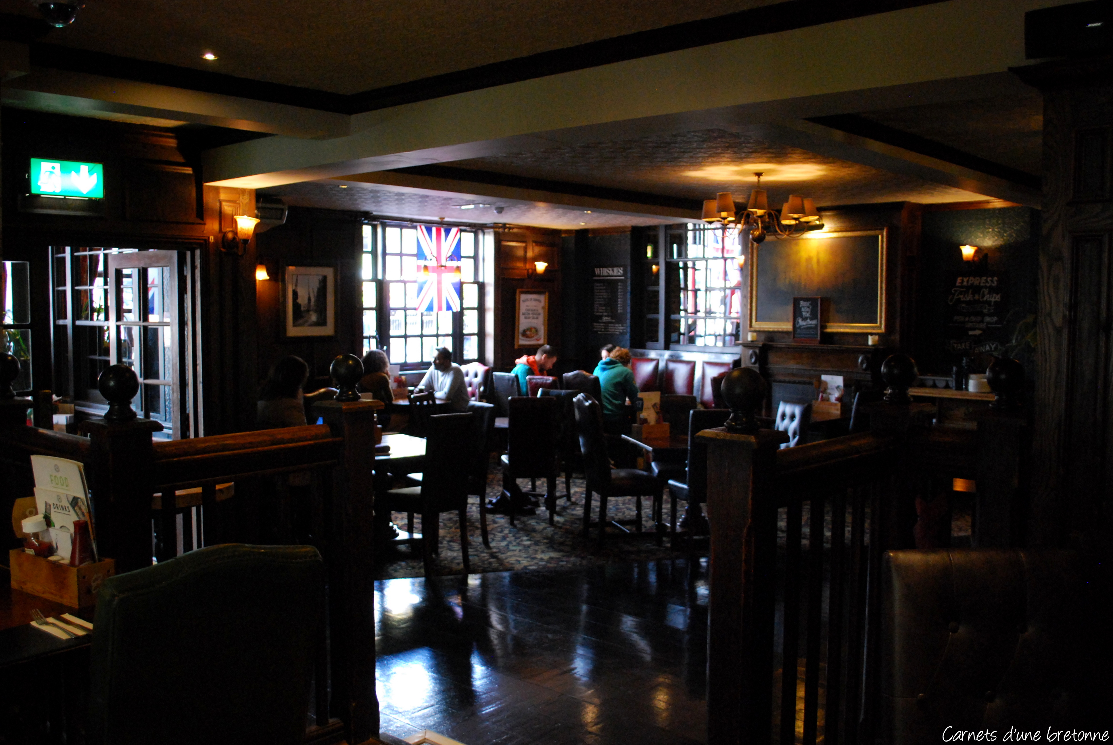 Il est clair que lorsque l’on va en Angleterre (ou même en Irlande) il serait dommage de ne pas s’arrêter au Pub ! Nous avons déjeuné à The Anchor Bankside, un pub situé au bord de la Tamise qui est l’un des plus anciens de Londres. La décoration vous met de suite dans l’ambiance british ! L’Union Jack exposé un peu partout, meubles et boiseries foncés, atmosphère tamisée… Il ne manque plus qu’un Fish & Chips accompagné d’une pinte et vous voilà anglais !