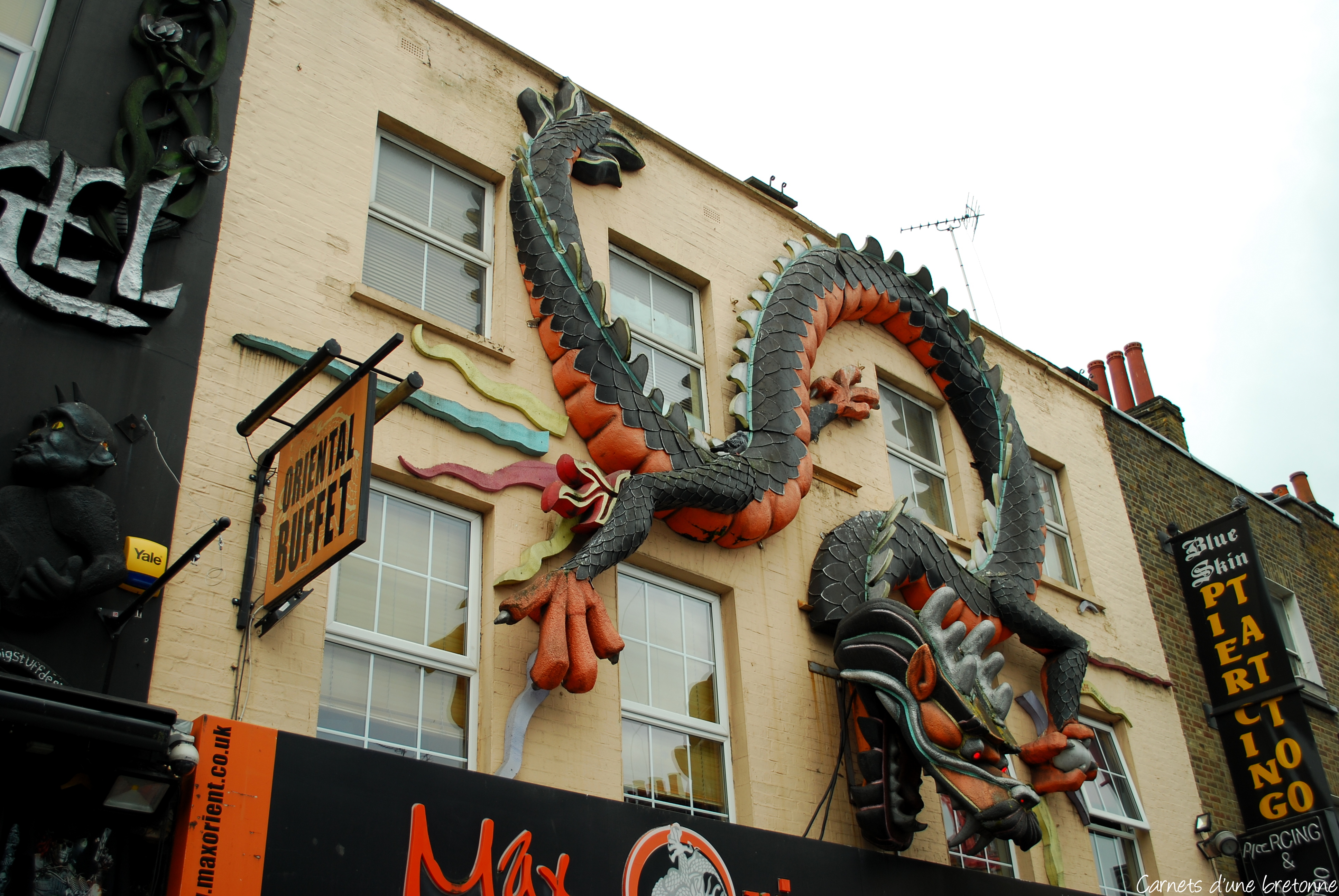 Camden Market est aussi une sorte de marché en continue, mais avec une ambiance différente. Il ne faut pas se perdre, car c’est un vrai labyrinthe avec des passerelles d’un bâtiment à un autre, des ruelles, des places… Nous sommes arrivés en péniche par les canaux de Little Venice (je vous en parle dans le prochain article). Ici, vous trouverez des boutiques vintage, des créateurs, mais aussi plein de petites cabanes de street food ! J’y ai d’ailleurs mangé mon meilleur Carrot Cake de tous les temps !!!