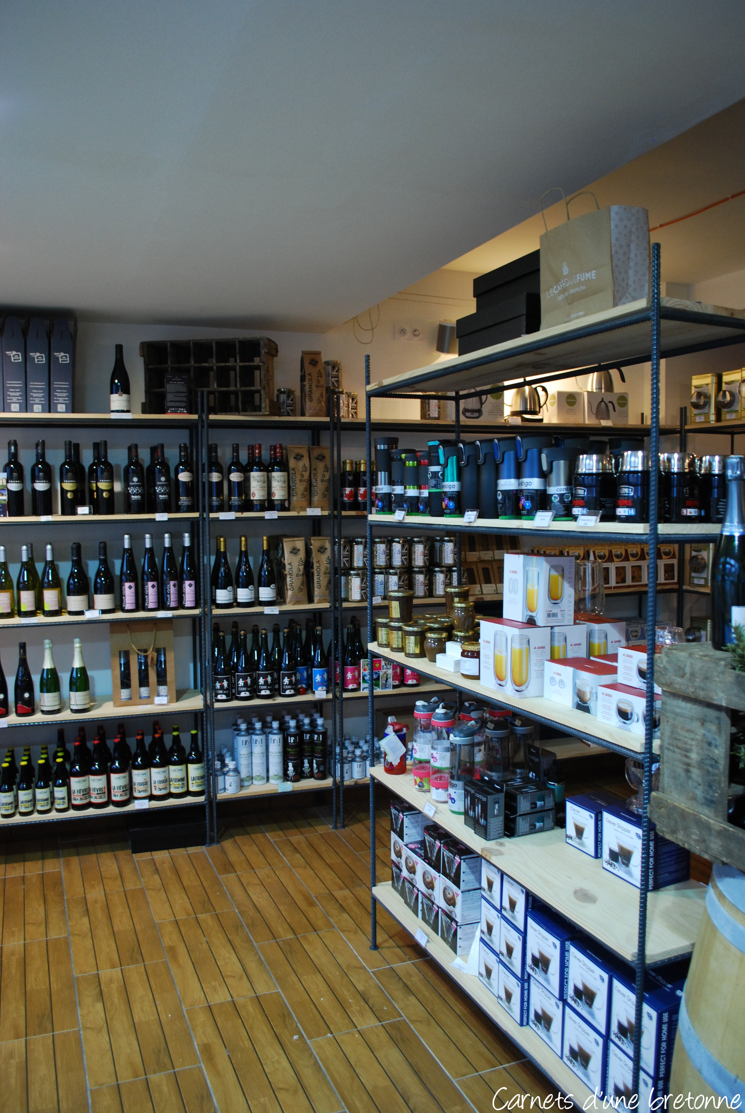 En plus de la partie coffee shop, Le Café qui Fume fait aussi épicerie fine en proposant des produits au maximum locaux fait avec amour (Chips de sarrasin, chocolats, jus de pomme, confitures, vins, thés, cafés, granola, huiles d’olive…). Mais aussi des produits étrangers comme du sirop d’érable ou de la charcuteries ibériques par exemple ! Un rayon bien fourni pour les épicuriens que nous sommes !