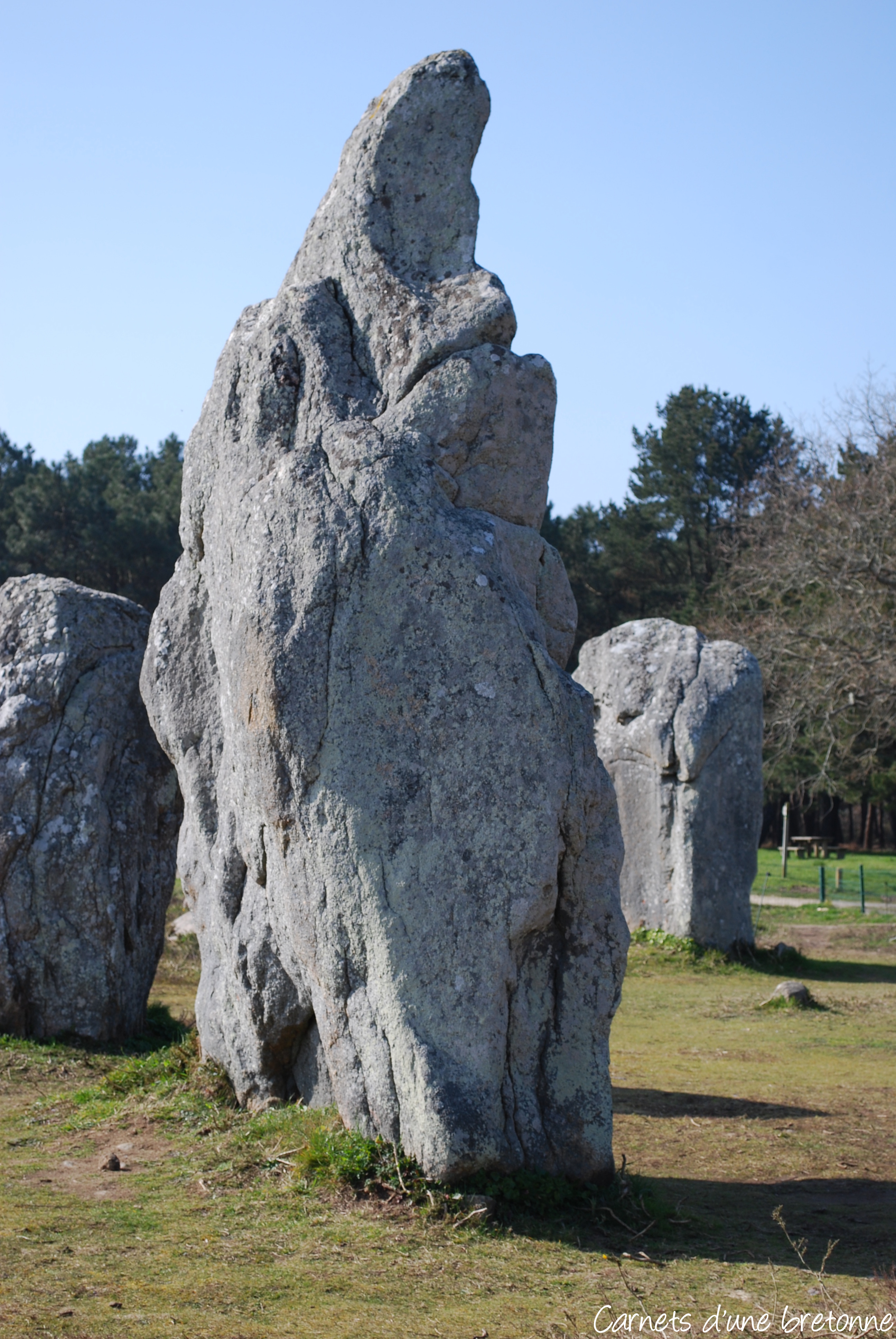 Par des sentiers, vous pouvez rejoindre ceux de Kermario. A cet endroit, la visite démarre par de plus grands menhirs, pour certains vous êtes obligés de lever la tête pour en voir le sommet, d’autres sont allongés tranquillement…