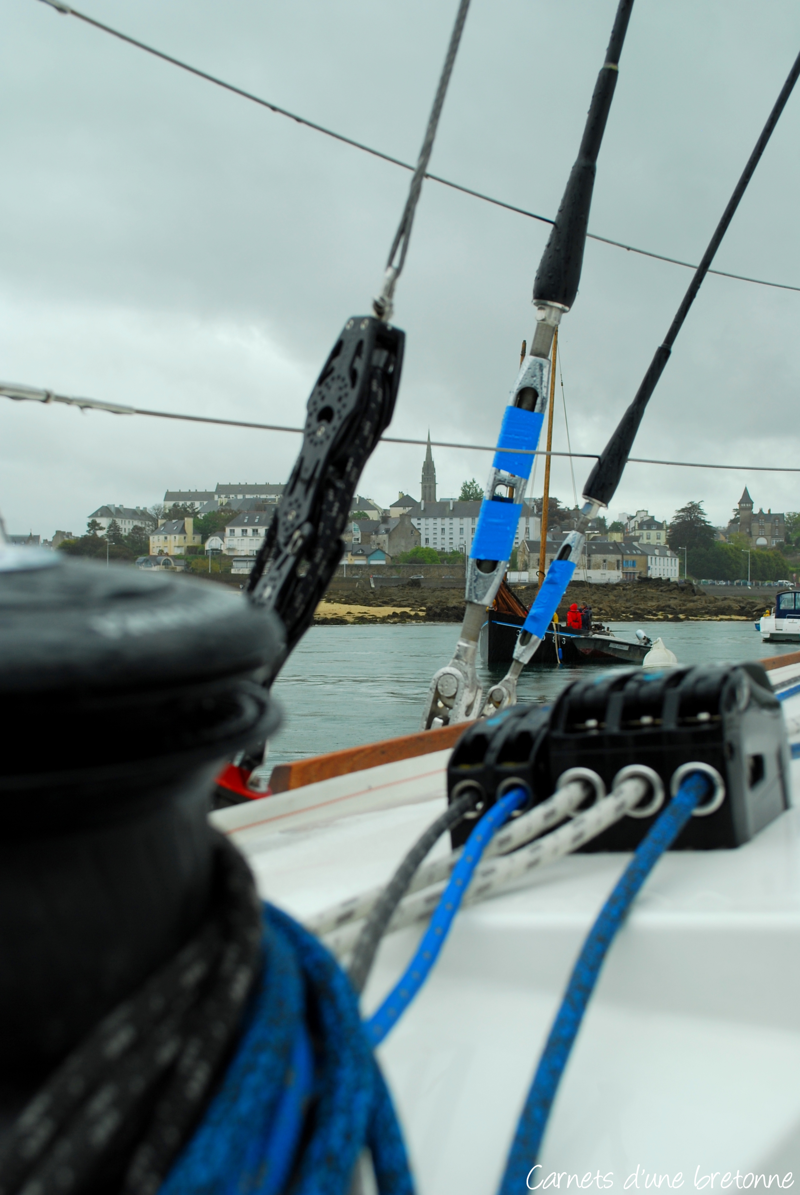 Sortir du port de Tréboul et admirer l’Ile Tristan et la baie de Douarnenez était super. Malgré un brouillard et un bon gros crachin breton nous avons pu visiter le catamaran et observer la régate qui se déroulait sous nos yeux.