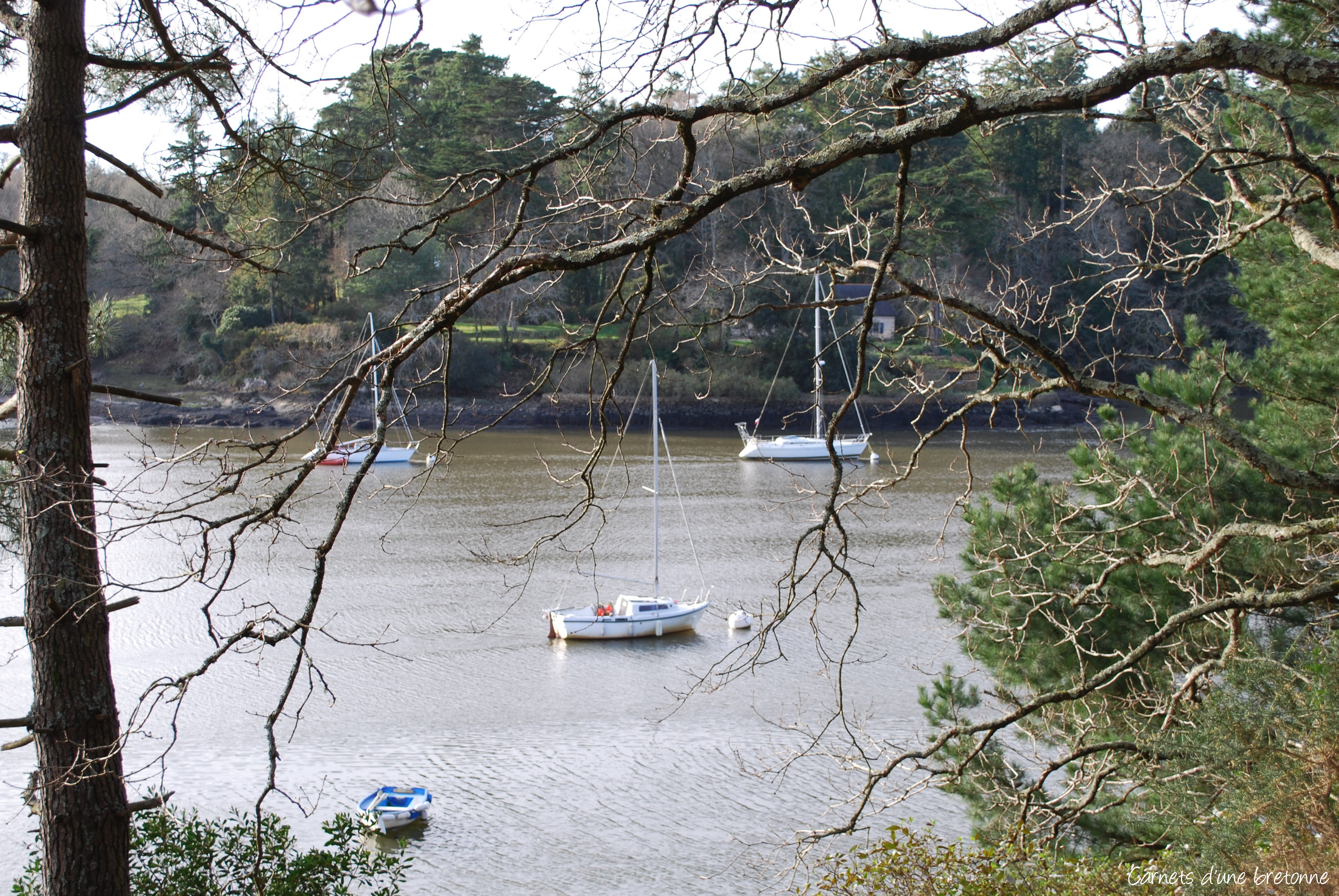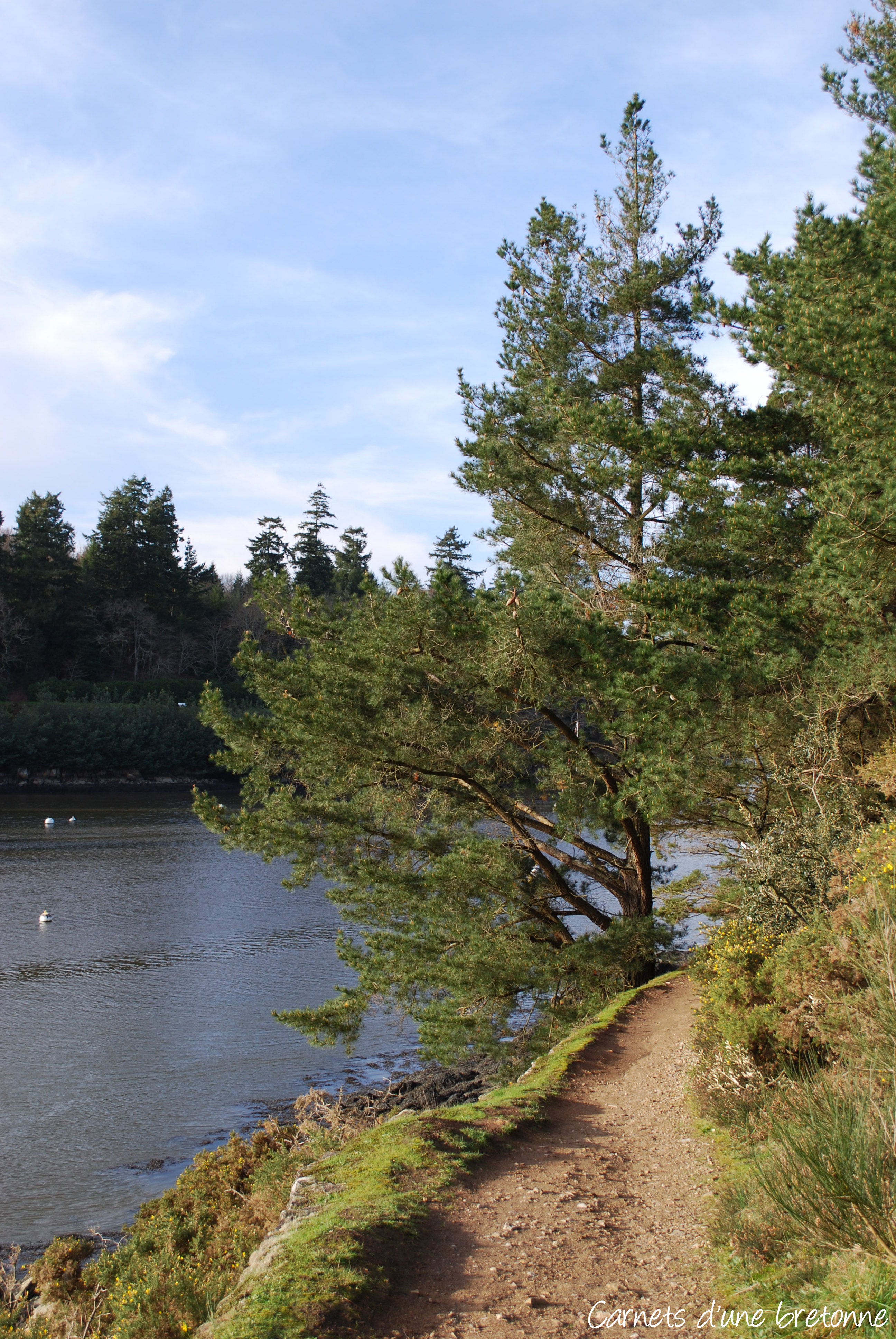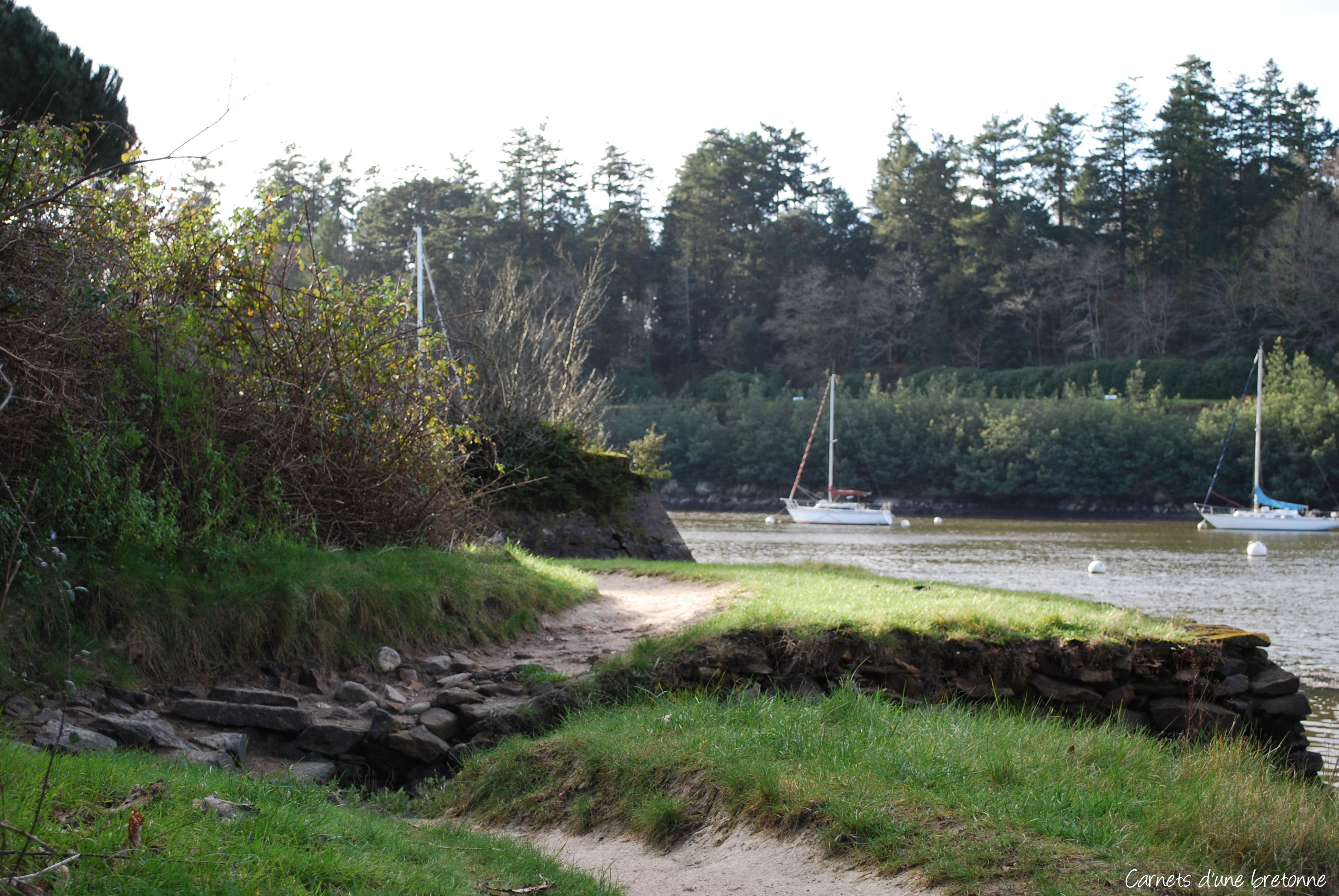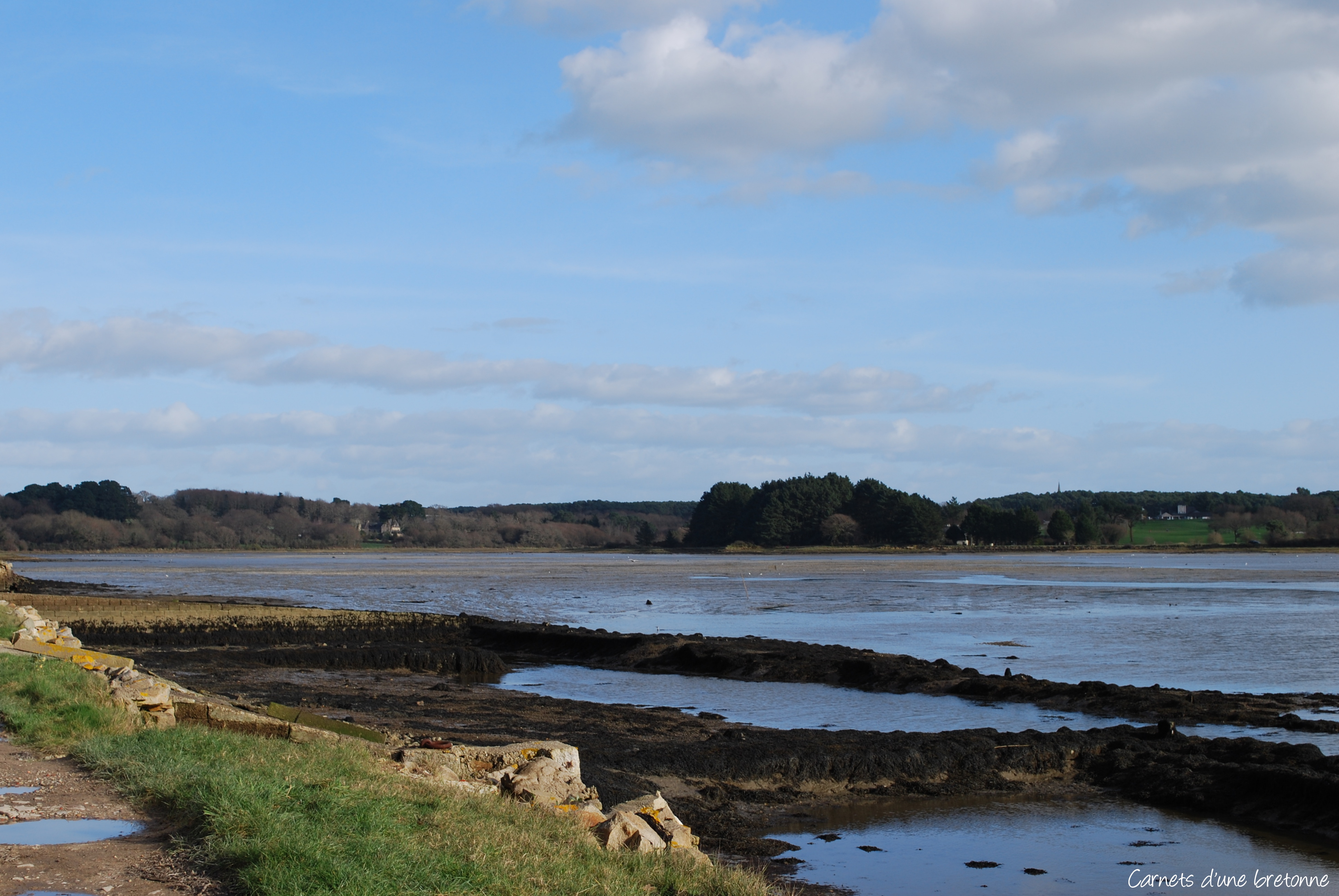 Le sentier continue vers le château de Kerdréan (au total le circuit fait 5-6 km). A marée basse la Baie de Kerdréan t’offre un beau spectacle de divers oiseaux marins.