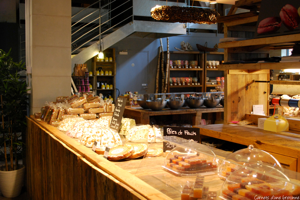 Lorsque vous entrez dans la boutique, en premier, se présente la partie épicerie fine où l’on vous proposera biscuits, chocolats, confiseries, confitures, vins, rillettes, condiments…