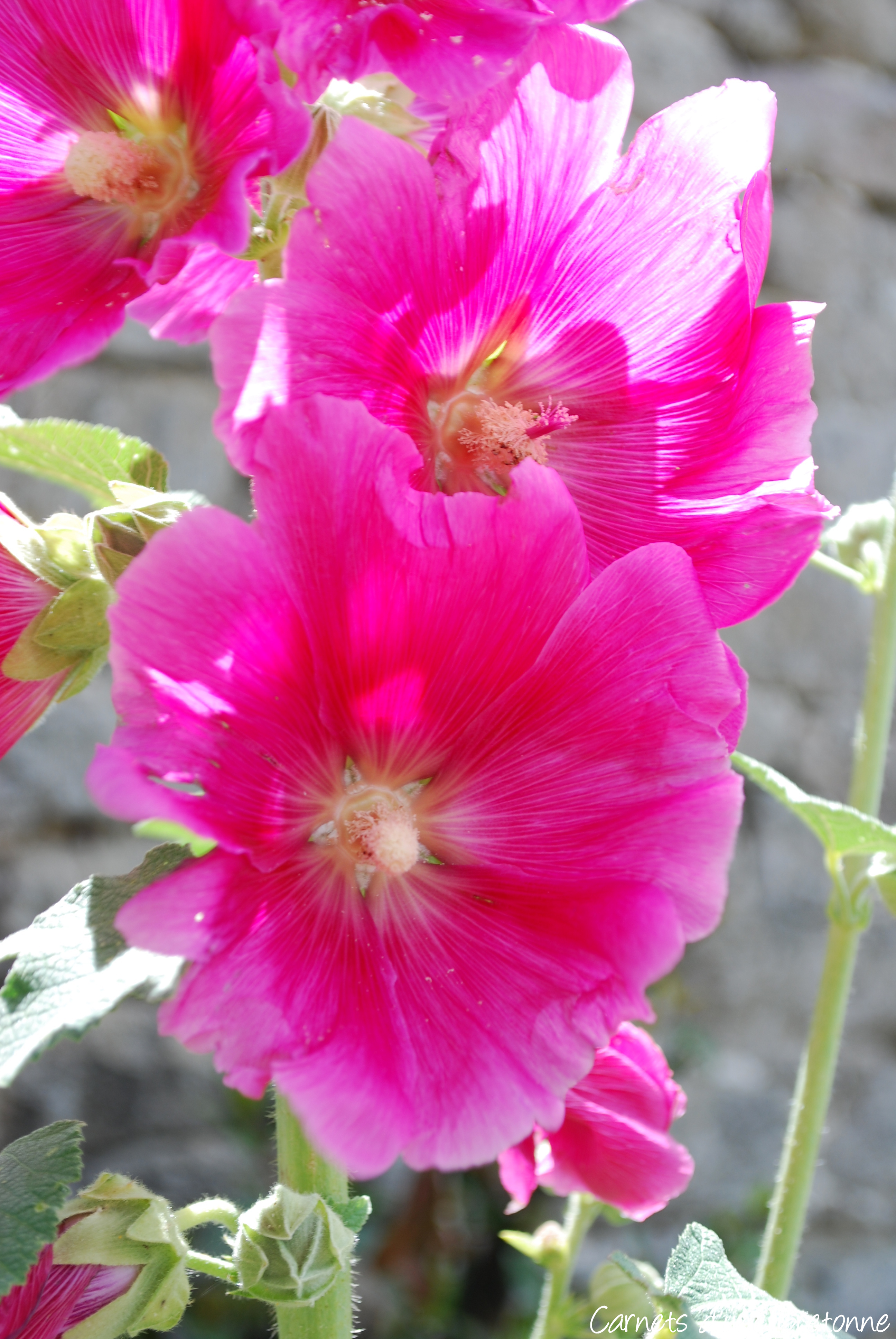 Il y a aussi les roses trémières, ces fleurs qui peuvent monter à 2 mètres de haut (ou plus pour les anciennes), accueillant sur leurs tiges de belles fleurs bien ouvertes. On trouve du rose foncé, rose clair, rouge bordeaux ou blanc.